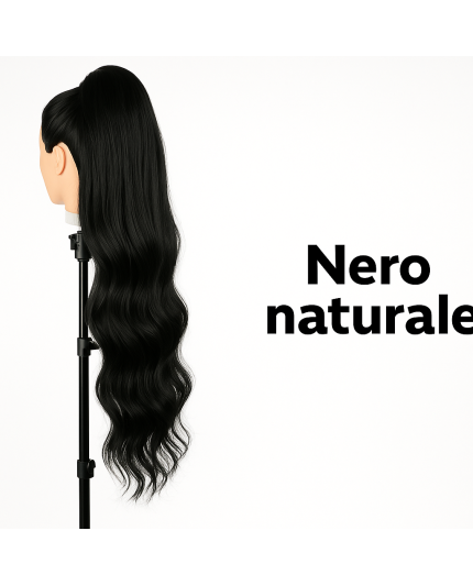 Fissaggio sicuro: velcro + pettinino interno per agganciare la coda naturale; invisibile anche su raccolti alti.